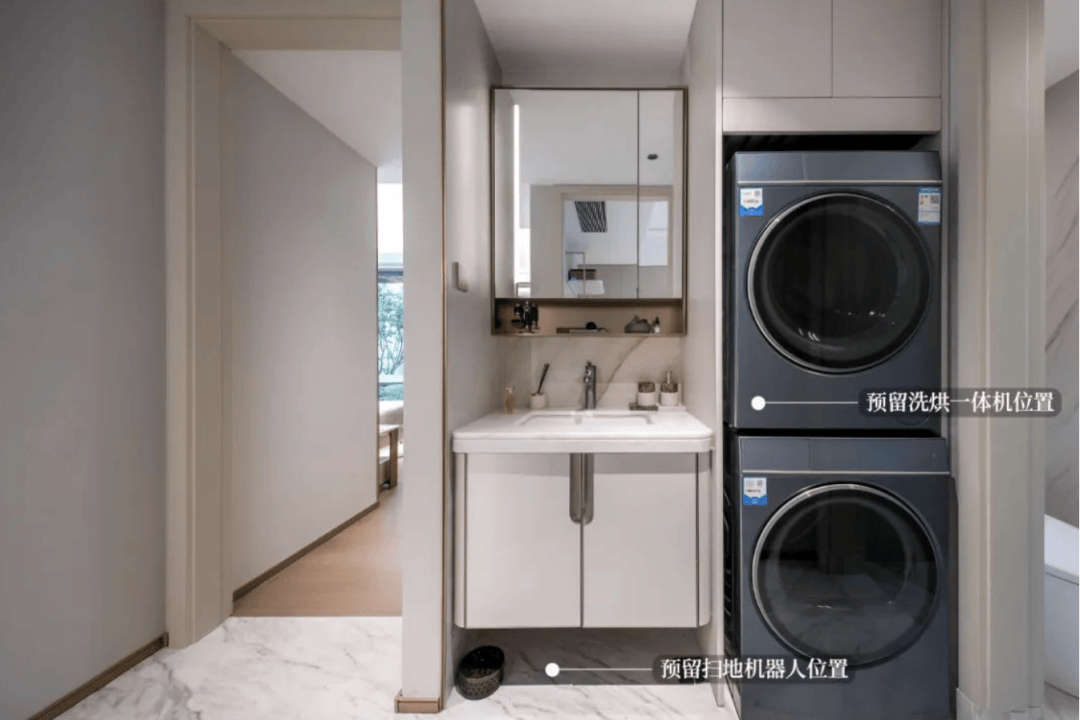 夸姣卫浴空间立异预留洗衣专区,可构成约5.7米的南向大横厅;